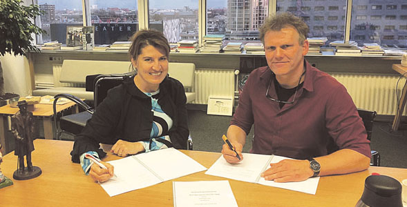 Foto: Wethouder Joris Wijsmuller en directeur-bestuurder Zeljka Udovičić-Schlick ondertekenen de samenwerkingsovereenkomst.